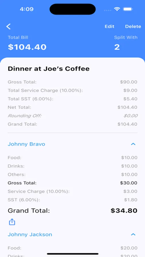 - Share bills to each individual in PDF via WhatsApp or any messaging app that you're using!