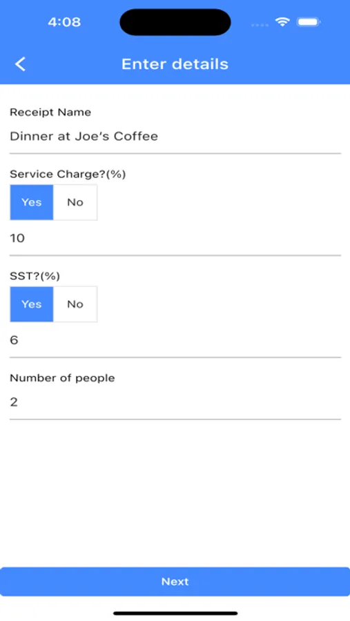 Simple bill calculator to split lunch or dinner bills with your family and friends!