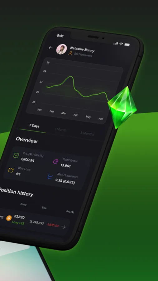 One of the app's standout features is its leaderboard for On-Chain traders, which provides a transparent view of the trading performance of the top traders on the platform. This allows users to quickly identify the most profitable traders to follow and potentially replicate their trading strategies.