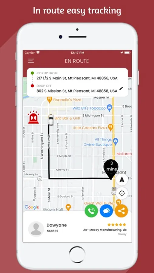 You can call your local authorities directly from the app, and your location and trip details will be displayed so you can quickly share them with emergency services.