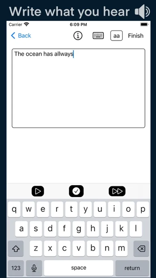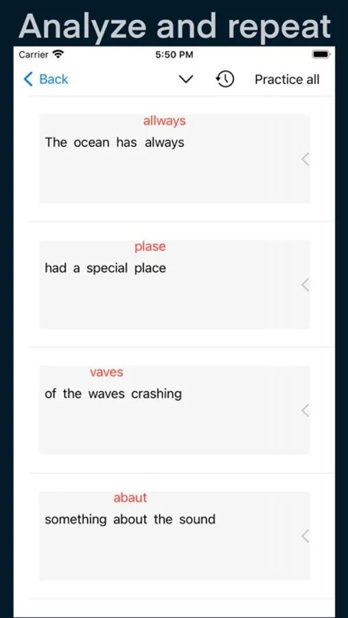 With this app, you can practice your listening and spelling skills. Save, analyze, and repeat misspelled words to improve your listening and writing skills.