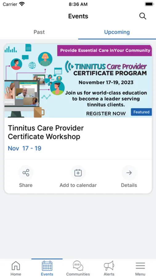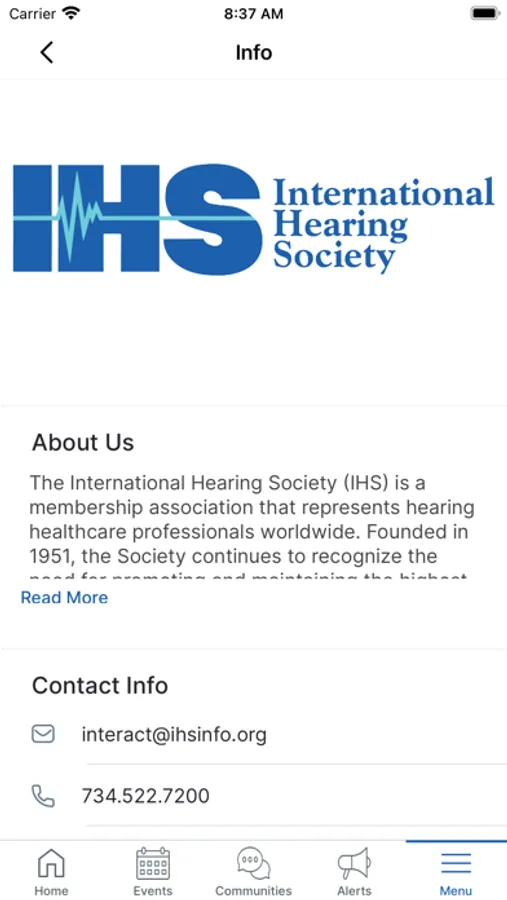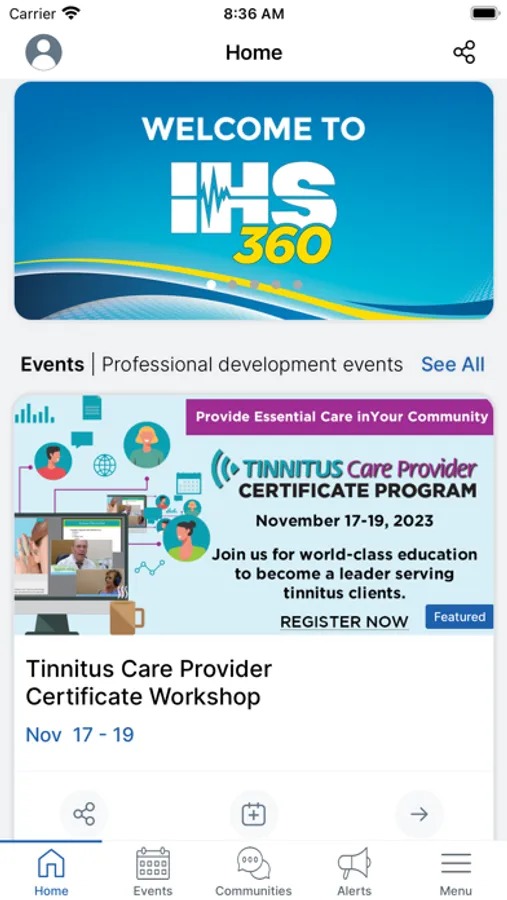 The IHS 360 Mobile app supports education and engagement services, namely, a continuing program about online resources, member information, hearing healthcare communities, hearing healthcare conventions, and event information.