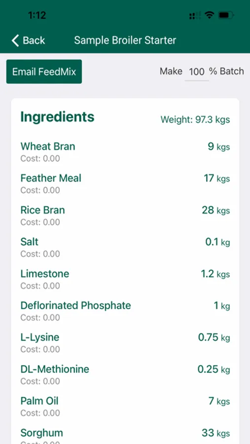 FeedMixer is meant for farmers intending to self-mix their own chicken and poultry feed with locally available ingredients including ingredient cost. While the FeedMixer app is intended to provide guidance across a range of breeds and bird ages, further tailoring of any feed mix should be considered based on the local environment where a farmer is rearing their flock.