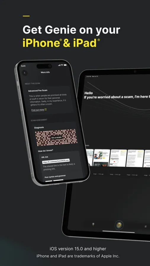 Unfortunately, criminals keep finding new ways to trick you. Genie is powered by advanced AI so the more you use it, the smarter it gets at detecting new scams. The more messages you upload, the more it evolves, keeping you even safer in the future.