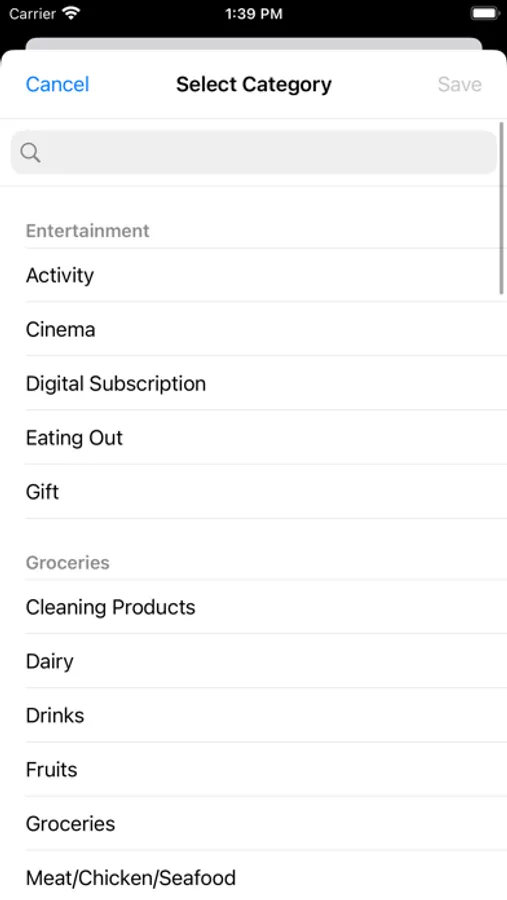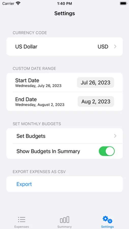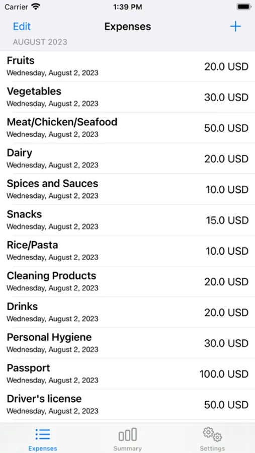 Summarises each category with total expenditure as well as percentage of total expenditure.