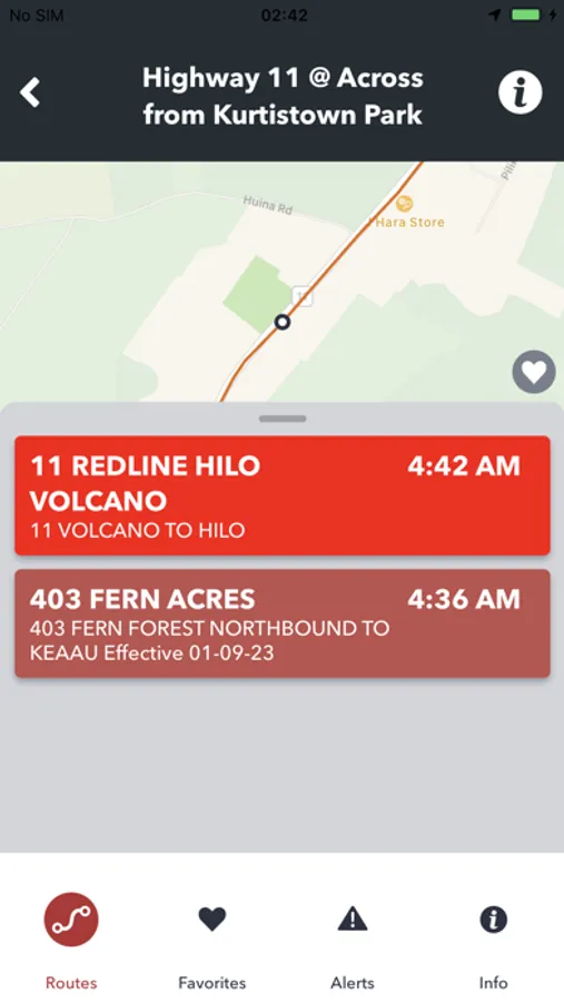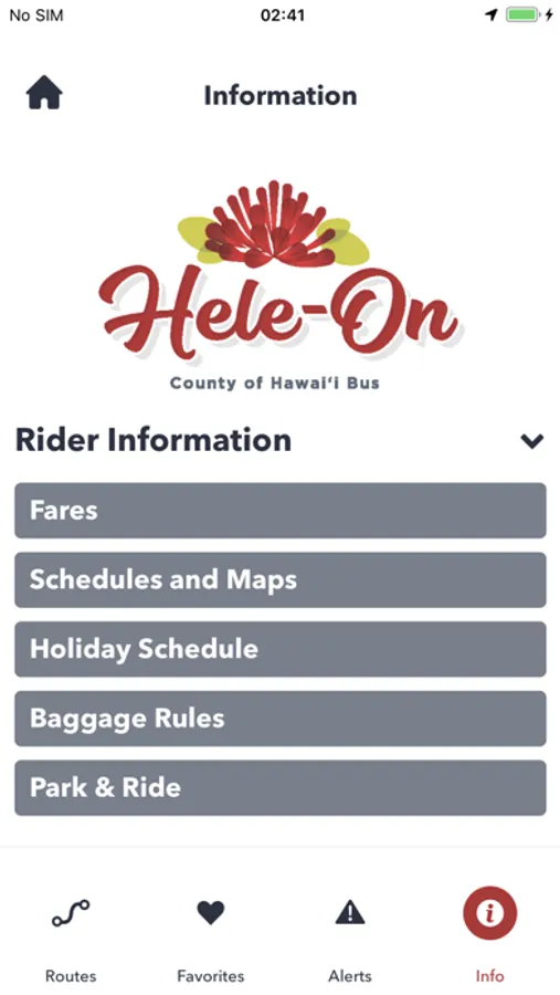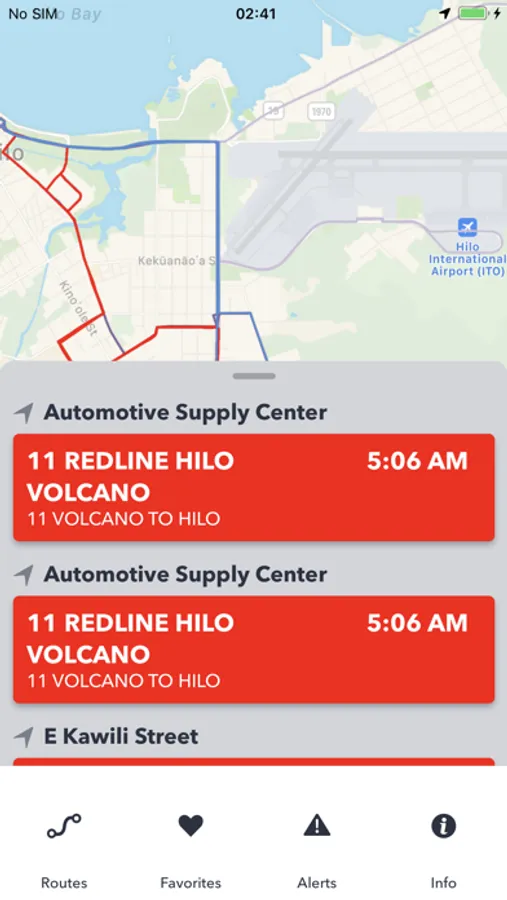 Provides real time tracking of Hawaii County buses. Allows users to save favorite stops and create automatic reminders for bus arrival times. Displays up to the date announcements regarding service changes, weather delays, and other news.