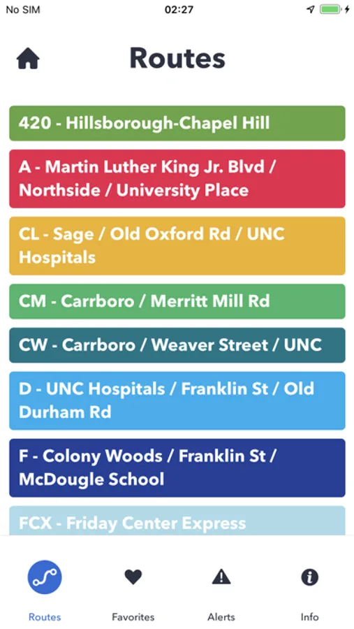 Provides real time tracking of Chapel Hill Transit buses serving the towns of Chapel Hill and Carrboro. Allows users to save favorite stops and create automatic reminders for bus arrival times. Displays up to the date announcements regarding service changes, weather delays, and other news.