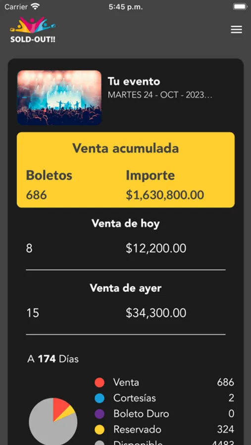 Da de alta tus eventos y adminístralos con la APP de Sold Out.