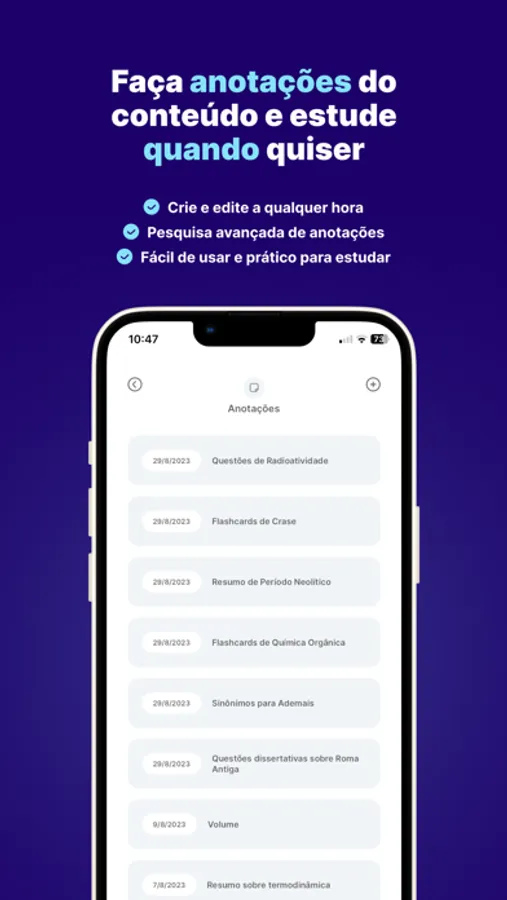 - Anotações inteligentes: Faça anotações enquanto estuda no aplicativo, e acesse-as facilmente quando necessário. Mantenha um registro das suas reflexões e considerações sobre cada tópico.