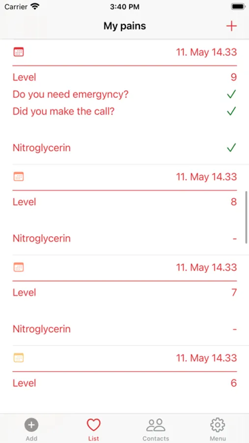 The app is very simple and yet very effective, register when you feel pain, scale it, describe it and then the pain is saved for later and possibly shared. You can always see a list of your pains and they’re editable, so it’s possible to add more details at a later time.