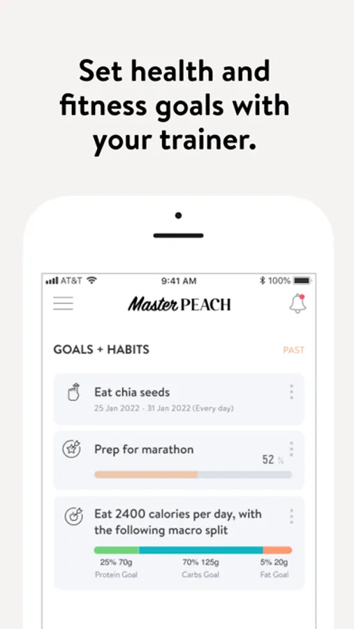 With the MasterPEACH App, you will have access to workout programs designed specifically to help you reach your fitness and health goals! MaterPEACH is specified on glute development training as well as body shaping and toning. You can follow & track your workouts, your nutrition, your lifestyle habits, measurements and results–all with the help of your coach.