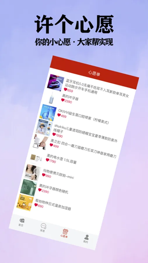 【心愿夺宝】小心愿独特的真实礼物交友场景,提供了上万份真实礼品,涵盖手机、数码、家电、健康、运动、百货等各个领域,在小心愿上参与心愿夺宝活动即可获得这些精美好礼,让你能够轻松实现自己的购物欲望!你也可以邀请新朋友来帮自己获得更多礼品。聊天交友,互赠礼品,礼轻情意浓,心愿不落空,这正是最受广泛年轻人喜爱并积极参与的。
