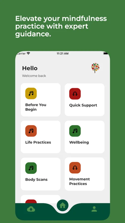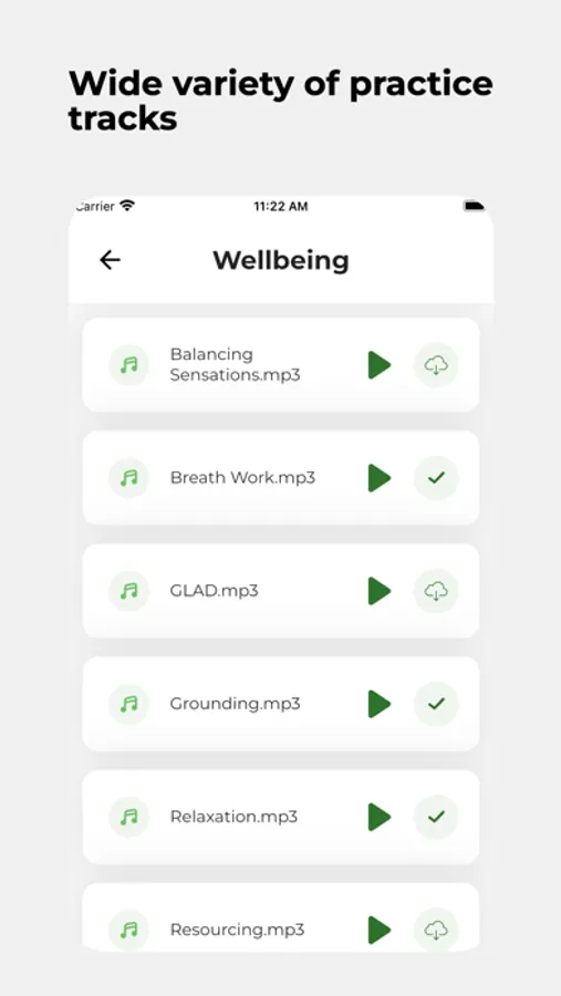 Access a wide variety of mindfulness practice tracks, including relaxation, body scans, specific sitting practices and movement guidance, as well as short tracks to shift into wellbeing.
