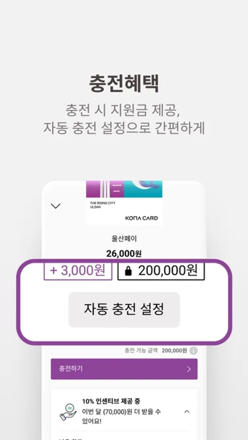 - 복잡한 계좌 이체가 아닌 자동 충전으로 언제 어디서나