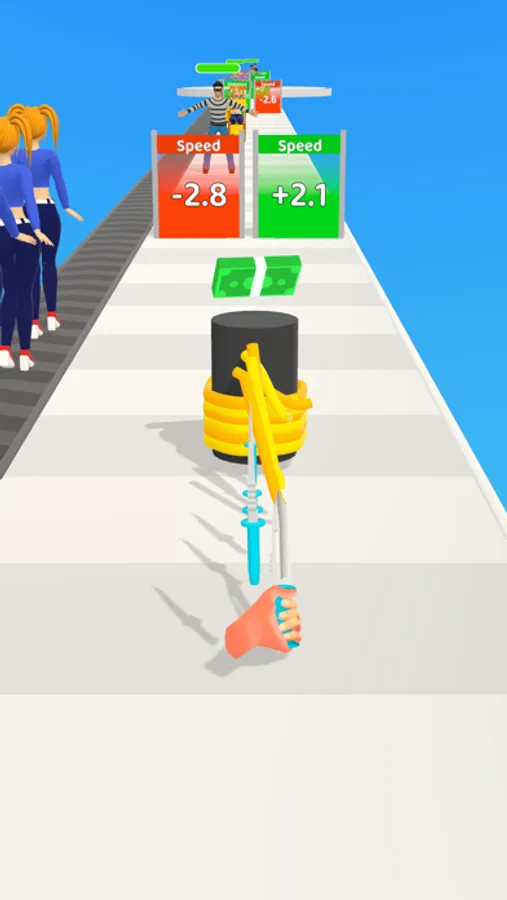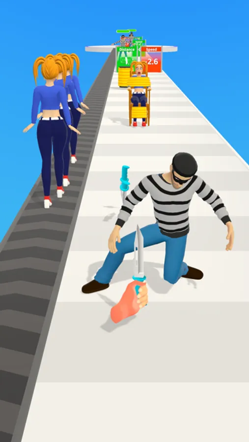 Untie Run is a runner game where you play as knife man and save the girls who is tied on chair. Throw knifes on thief on the go and collect cash. Cut the ropes when you untie is satisfactory part of game. And finally merge all girls to become super woman and fight with boss villain.