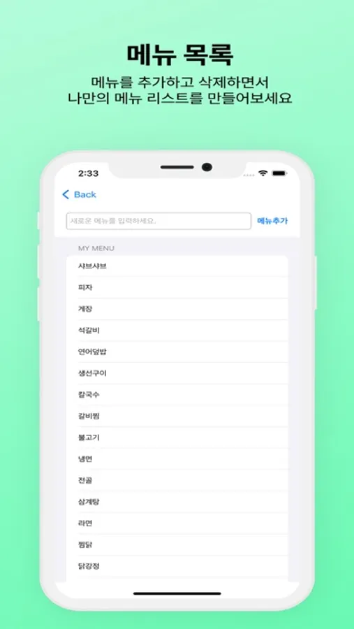 나만의 메뉴 리스트를 만들어 사용해보세요.