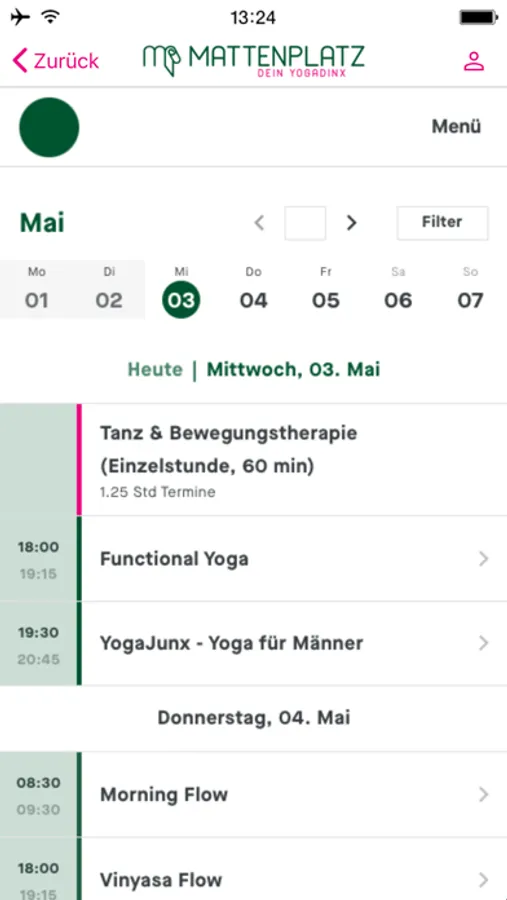 Hier kannst du dir unseren Stundenplan ansehen - immer aktuell - und dich direkt für unsere Klassen, Workshops und Specials anmelden.