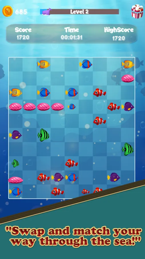To help you clear the more difficult levels, Aquatic Crunch features a range of powerful power-ups that you can collect and use. From bombs that blast away multiple items at once to lightning bolts that clear entire rows or columns, these power-ups can give you the edge you need to complete even the toughest challenges.