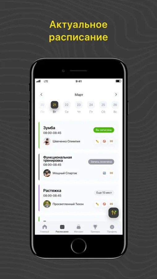 Посмотреть актуальное расписание тренировок;