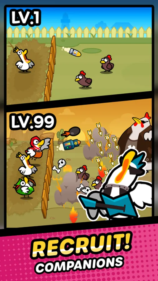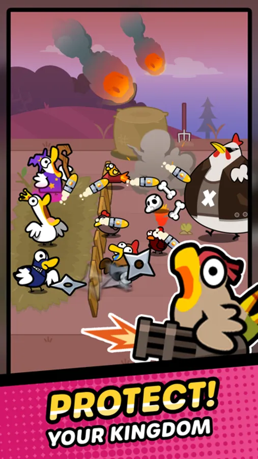 Enhance comical ducks that shoot missiles to push back the crazy chickens!