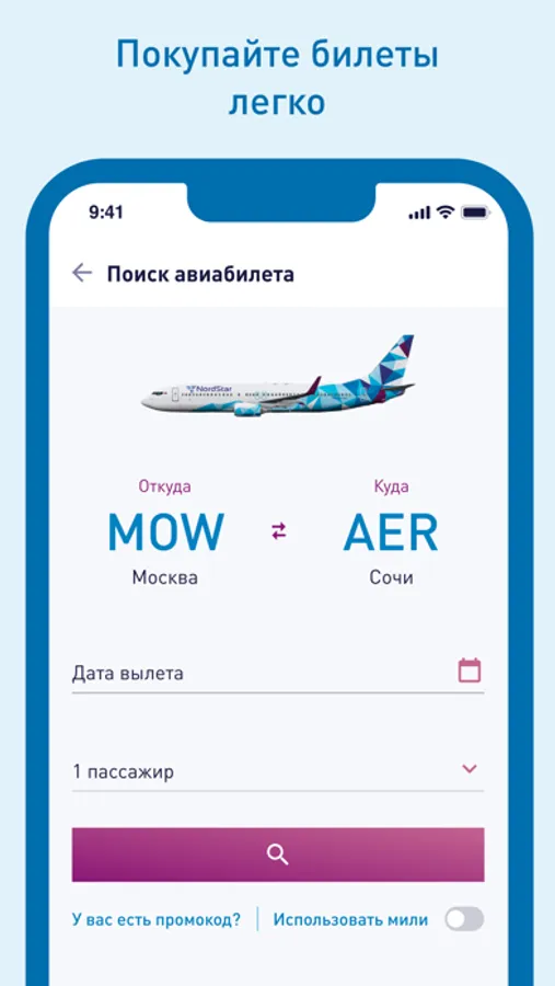 Официальное приложение авиакомпании NordStar для поиска и приобретения авиабилетов. Быстрый и функциональный поиск авиабилетов, оптимальный подбор маршрутов и тарифов на перелет, широкая линейка дополнительных услуг, удобная система оплаты – все необходимое, чтобы девизом Вашего путешествия стало «Летать легко!».