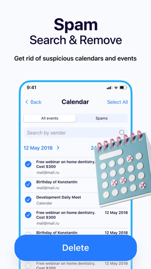 - Find and delete spam events in the calendar