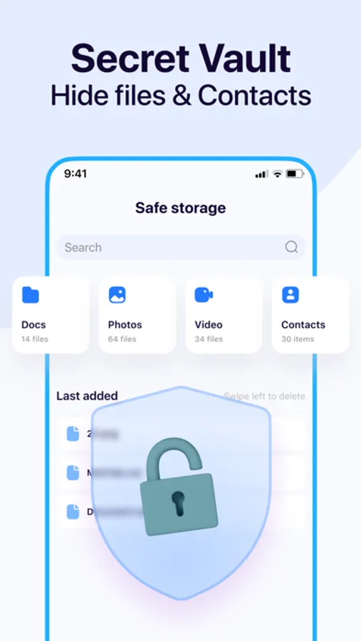 - Protect your personal photos, videos and contacts in password protected storage.