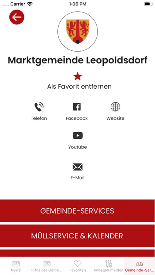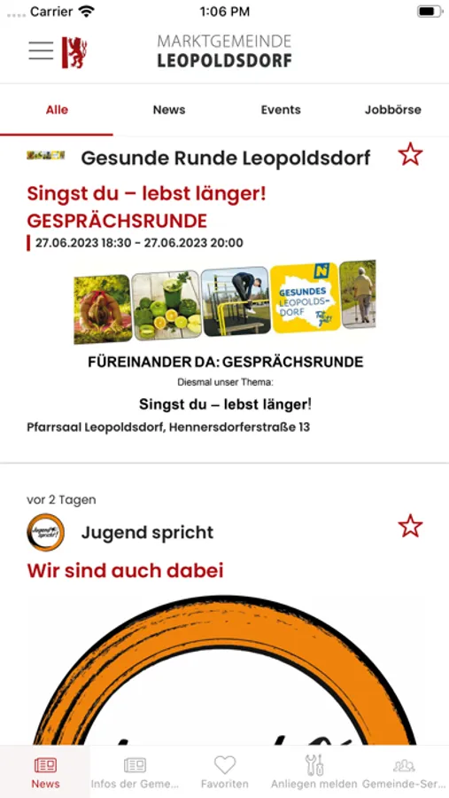 Der Gemeinde-Service-Bereich bietet bereits zahlreiche Features, wie Müllkalender mit Erinnerungsfunktion und eine Funktion ihre Anliegen schnell und einfach an die Marktgemeinde zu übermitteln. Bald folgt auch die digital integrierte Leopoldsdorf-CARD, die auch als Zutrittssystem fungieren wird. Diese Funktionen ermöglichen allen BürgerInnen sich aktiv am Gemeindeleben zu beteiligen. Jetzt downloaden, informiert bleiben, Vorteile genießen und erleben wie einfach digitale Gemeindekommunikation funktioniert.