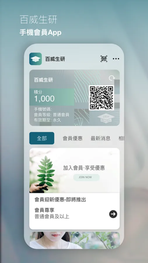 * 手機會員卡:下載手機程式並登記成為正式會員,即可隨時隨地查閱最新會員積分。