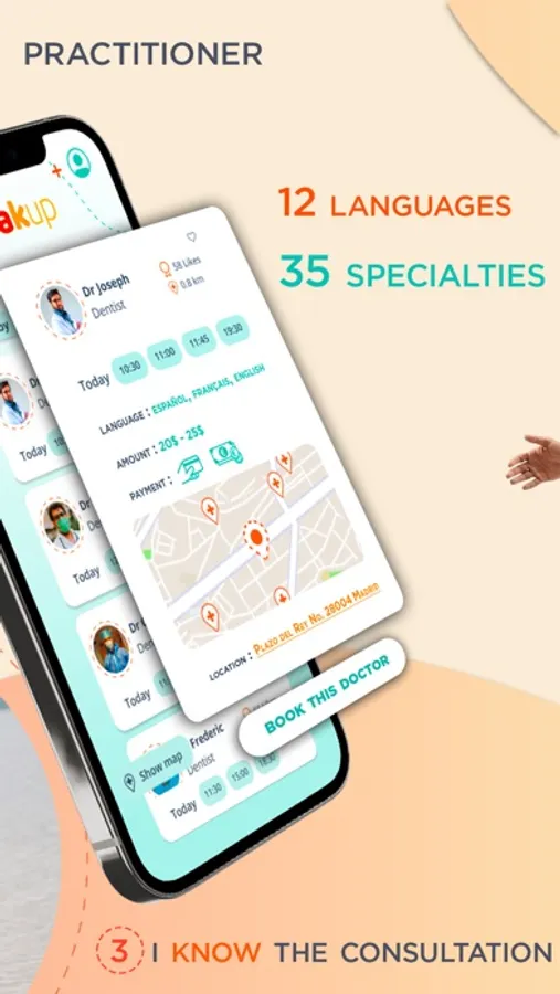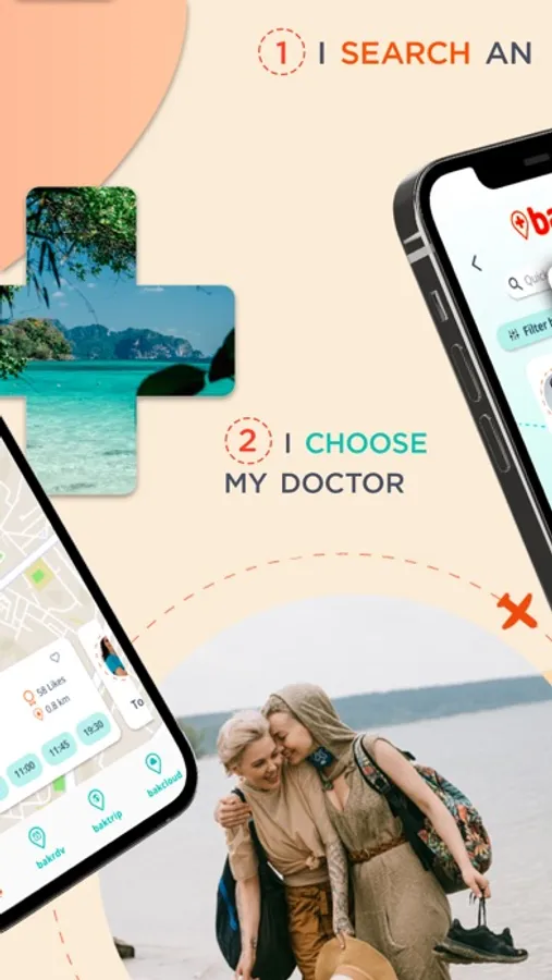 With Bakup, visualize the health professionals who speak your language during your trips abroad.