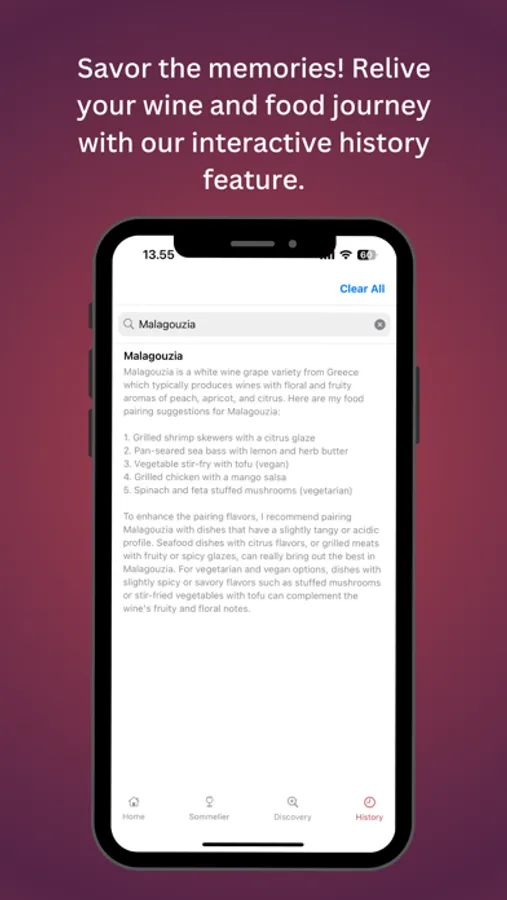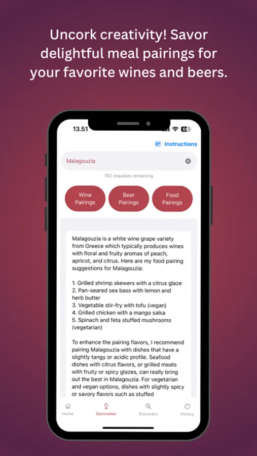 4. Perfect Meal Match: Struggling to find the right meal for your wine? Enter the wine details, and the app will offer a list of meal pairings that perfectly complement your chosen wine, creating a special dining experience.