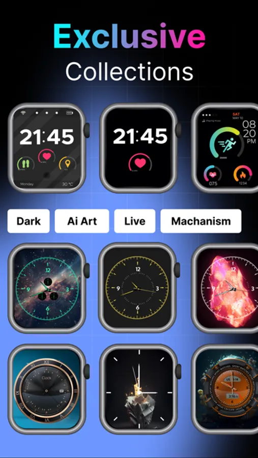 The watch faces app consists of an unparalleled collection of high-quality watch faces that are specifically designed for smartwatches. From sleek and minimal designs to bold, funky, and colorful patterns, our app contains a watch face that can surely suit your style and preference.