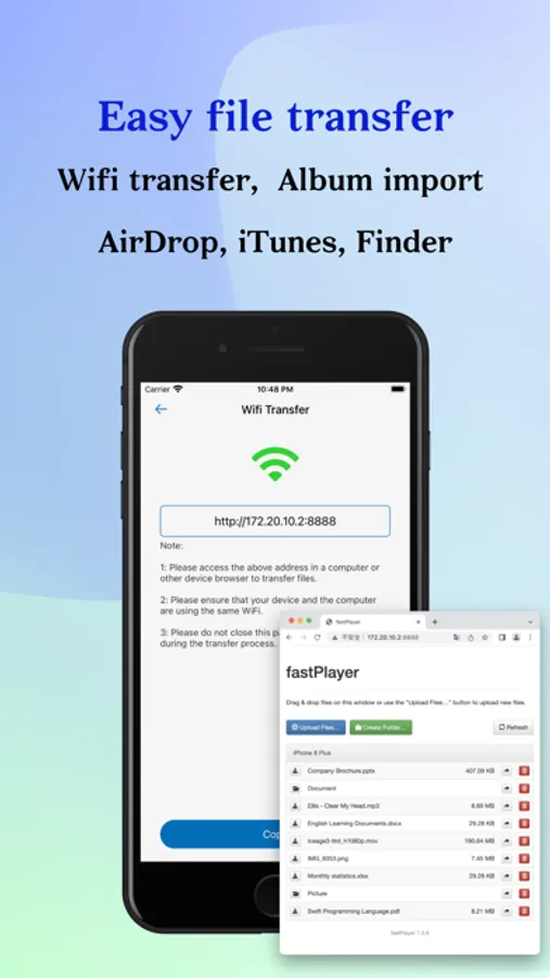 fastPlayer is a local player that supports multiple audio and video formats, and can directly transfer videos from the computer to the device through iTunes SMB or WiFi.