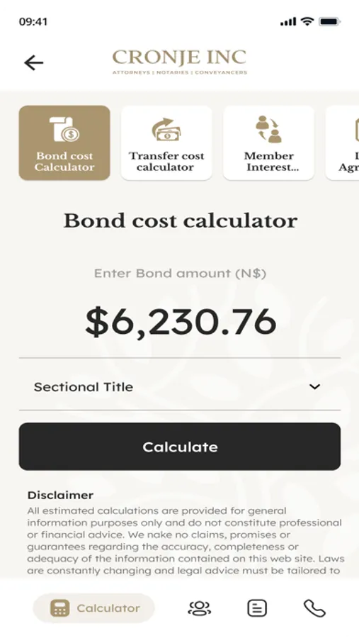 Cronje app simplifies real estate transactions by accurately calculating bond and transfer duty, lease agreement fees, and merger filing duties for the Namibian market.
