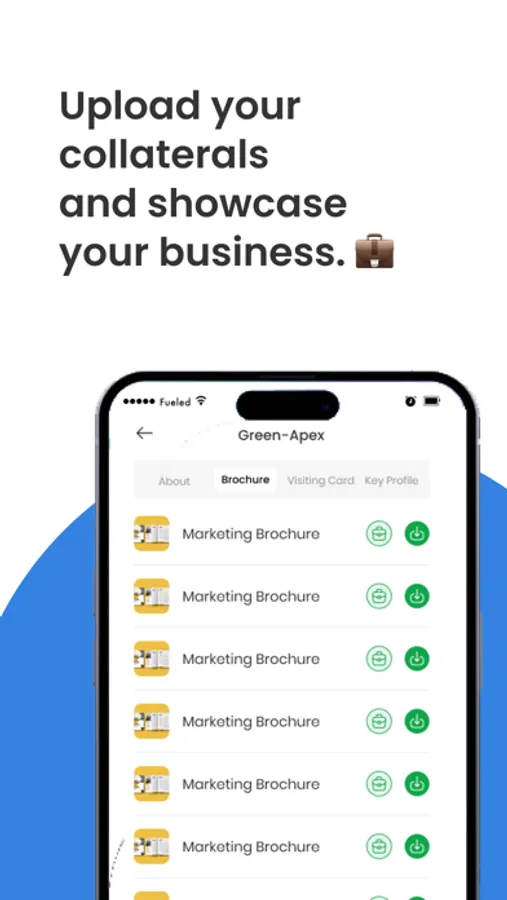 - Upload company collaterals on your profile (can be downloaded by other users).