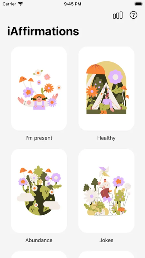 • 6 categories of affirmations, including health, relationships, abundance and financial success, and more.