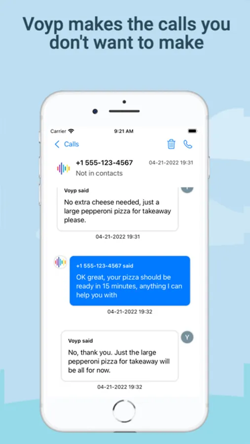 Make restaurant reservations, order takeout, schedule appointments and more. Just tell VOYP what you need and it will make the call for you.
