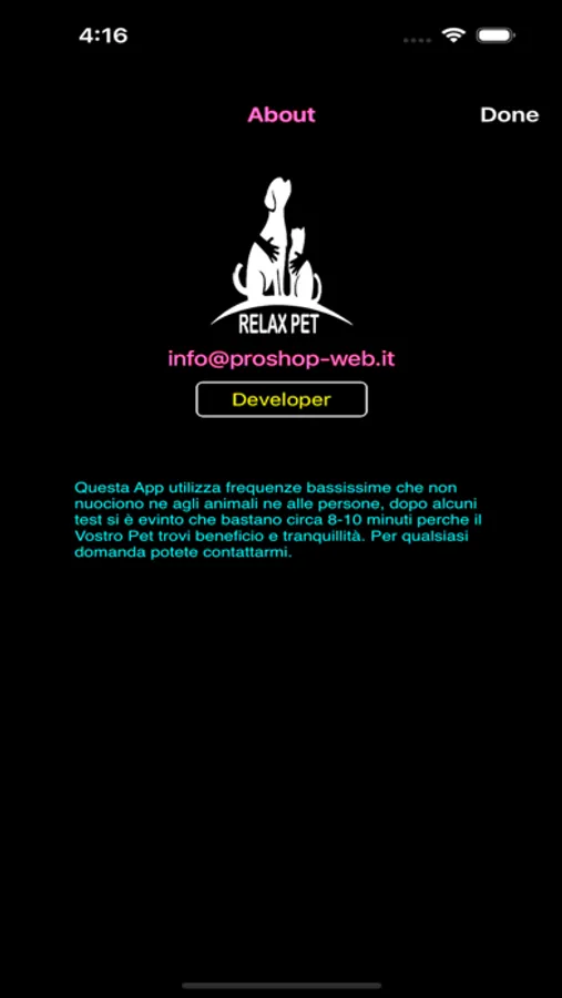 Avete un cane o un gatto che sono irrequieti ? Potete provare la nostra App che con determinate frequenze (basse frequenze) aiuta loro a rilassarsi.