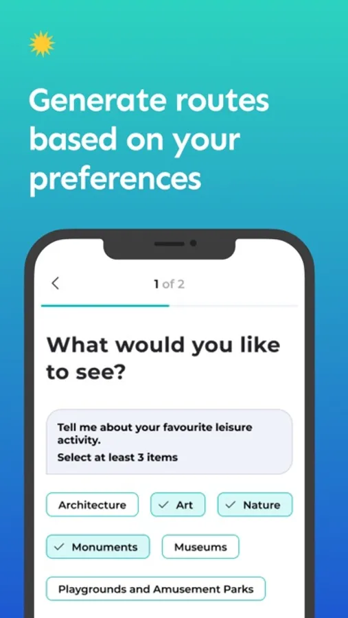 Now everything is ready for your new and exciting journey! Click the “Generate” button, so that YOWAY can select places you like and create your personal route.