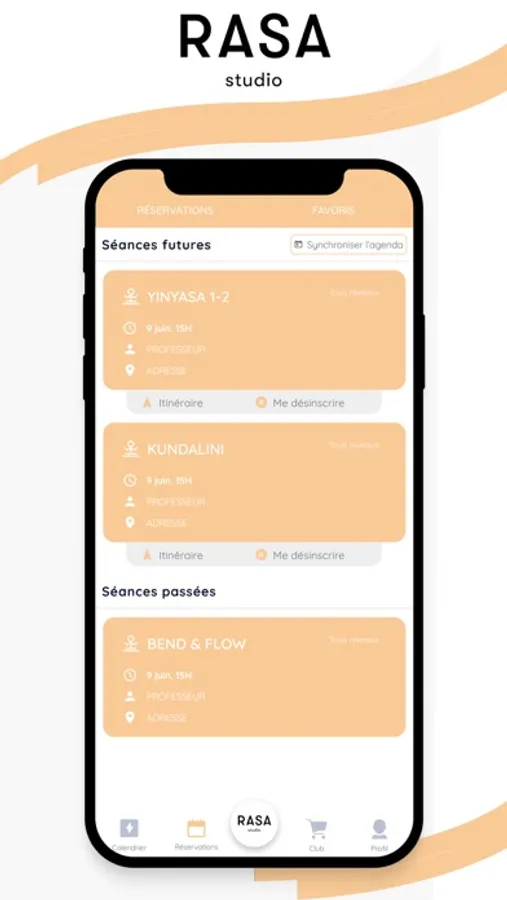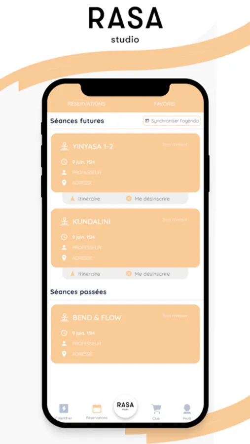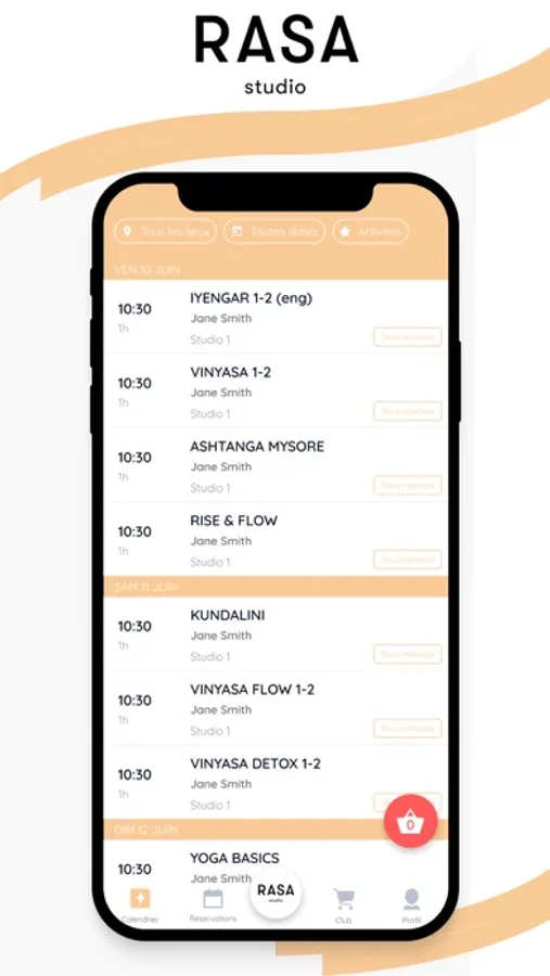 Téléchargez l'application RASA dès aujourd'hui pour planifier et programmer vos cours de yoga ! À partir de cette application mobile, vous pouvez consulter les horaires des cours en studio et en ligne, vous inscrire à des cours, gérer votre horaire de spa et rester à jour sur les ateliers et les événements.