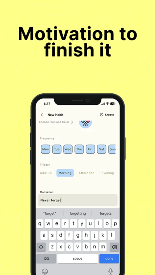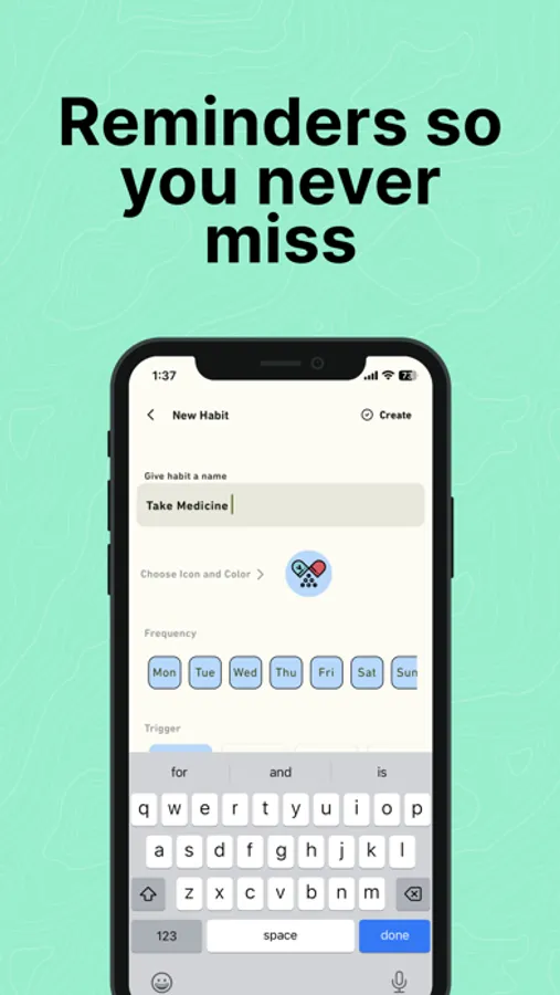 Plan your day with Dandelion : Create and organise your daily routines to slowly turn them into habits. Habits are visualised in circles to give you quick recording experience. You can customise the habit circles with your own choice of colors, icons and shapes. Need a reminder for every habit, not a problem, you can create a customisable notification that reminds you about your habit.