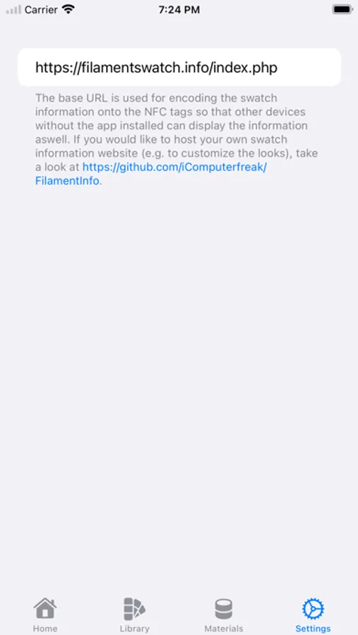 The app encodes the filament information as a URL that is saved onto the NFC tag. This way, any NFC reader can be used to view the information saved on the tag.