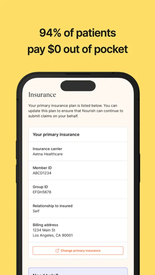 • Affordable: 94% of Nourish patients pay $0 out of pocket