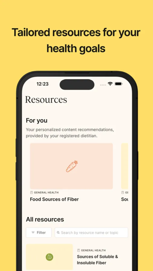 • Read resources tailored to your health goals, created by Nourish's community of expert dietitians