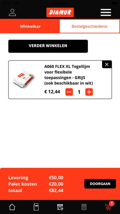 Via de Diamur app kan u makkelijk uw werfadressen ingeven, vorige bestellingen controleren en nieuwe bestellingen plaatsen.