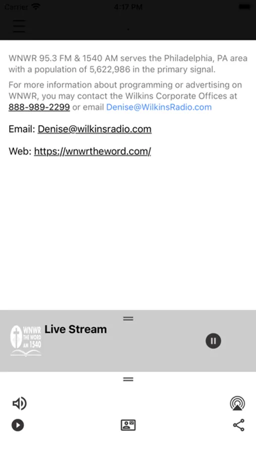 For more information about programming or advertising on WNWR, you may contact the Wilkins Corporate Offices at 888-989-2299 or email Denise@WilkinsRadio.com.
