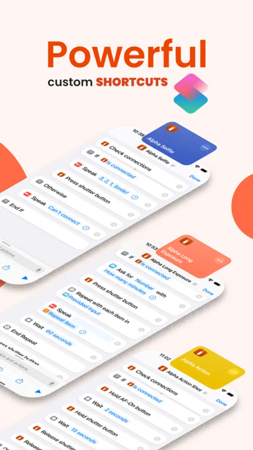 - Use predefined or create your own powerful Apple Shortcuts. Trigger them with Siri or Action Button.