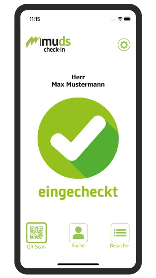 Einfache Bedienung mit QR-Code Scan, Suchfunktion mit manueller Eincheckfunktion. Über die Besucherliste sehen Sie jederzeit die Anzahl der eingecheckten Besucher:innen.