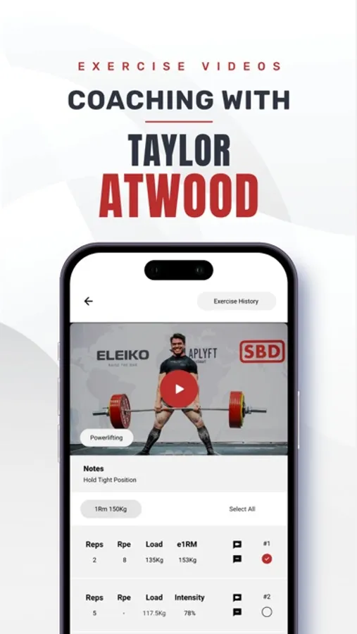 The app is designed by 3x World Champion Powerlifter & All-Time World Record Holder Taylor Atwood, and his Coach, Jason Tremblay.