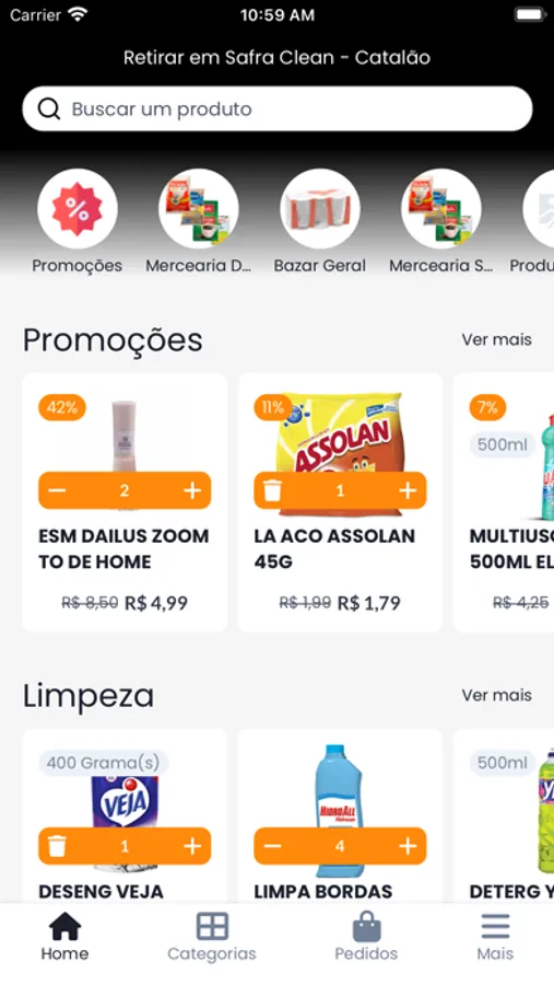 Agora o cliente do Safra Clean pode fazer suas compras pelo celular em qualquer horário e agendar a entrega das mercadorias.